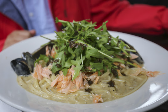 In our frenzy in Food Co-op, we wiped off lots of food enough to feed us for 4 days. So, dinner became an elaborate affair with salad, pasta, tiny langoustines , mains , not counting wine and dessert. It looked like we would have to work harder tomorrow to expand the calories taken.